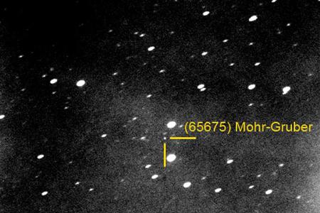 Zu den vielen Ehrungen, welche die beiden meist postum erfuhren, gehört auch ein Asteroid, ein kleiner Himmelskörper, der zwischen Mars und Jupiter um die Sonne kreist. Seit 2004 trägt der Asteroid Nr. 65675 offiziell den Namen «Mohr-Gruber». Freimut Börngen entdeckte den etwa sechs Kilometer messenden Kleinplaneten 1989. Der Fachastronom der Sternwarte Tautenburg bei Jena in Deutschland hat mit dem dortigen Zwei-Meter-Teleskop im Laufe seines Berufslebens über 500 neue Kleinplaneten gefunden.