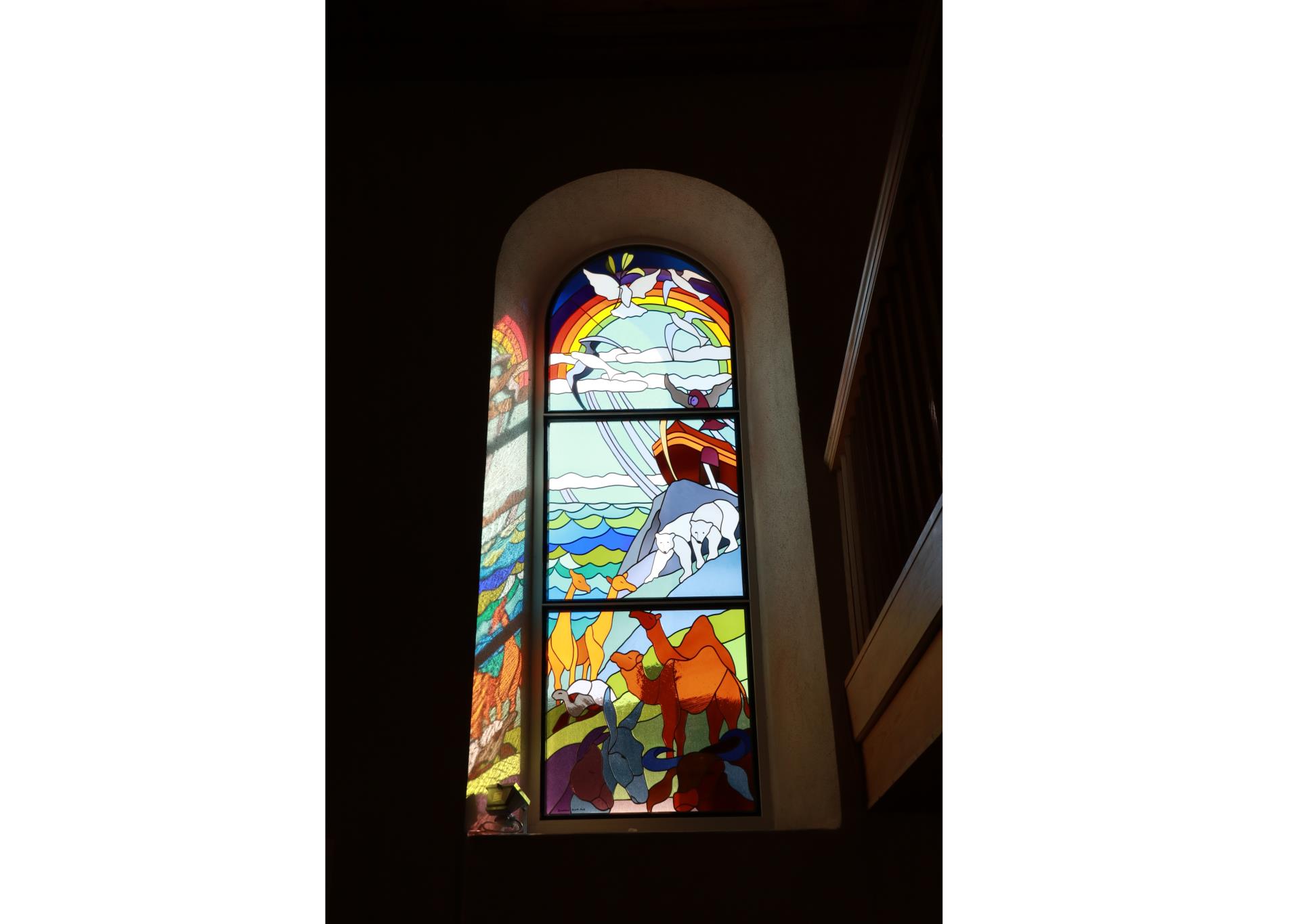 Wie steht es mit Glasfenstern in der heutigen Zeit, in der keine Kirchen mehr gebaut werden? In der sich, nicht mehr wie im Mittelalter, wohlhabende Familien mit ihren Scheiben ein Denkmal setzen wollen? Neue Glasfenster würden kaum mehr in Auftrag gegeben, sagt Kunstglaser Daniel Hebeisen aus Amriswil. Es ist eine aussterbende Gilde, der er angehört. Und doch hatte er 2014 die Gelegenheit, ein Kirchenfenster im Auftrag der Künstlerin Kundry aus Fruthwilen anzufertigen. «Kirchenfenster sind etwas vom Anspruchsvollsten », sagt Hebeisen. Er ist beeindruckt, wie gut sich die Farben im Glas über Jahrhunderte halten. Diese bleichten fast nicht aus, ein Unterschied zum Originalglas unter dem Blei sei kaum wahrnehmbar. Das Glas für das Kirchenfenster in der reformierten Kirche in Raperswilen stammt aus dem deutschen Waldsassen, wo es verschiedene Glashütten gibt. Das Fenster wurde von Margrit Moll-Aebi in Gedenken an ihren verstorbenen Mann und ehemaligen Ständerat Heinz Moll gestiftet. Am 1. Februar 2015 wurde das Fenster, das die Arche Noah zeigt, im Beisein der Stifterin und der Künstlerin eingeweiht.