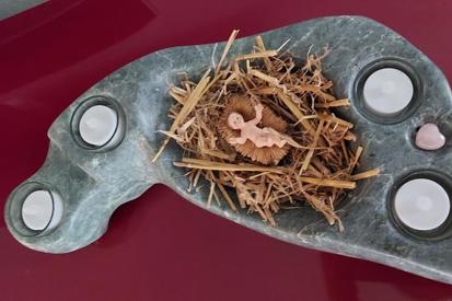 Klangschale der Stille-Meditation der ökumenischen Kirche Halden, St. Gallen. Die Passionszeit ist traditionell die Zeit des Fastens und der Meditation. Der Journalist Stefan Degen hat «ein Sitzen in der Stille» in der Kirche Halden besucht und festgestellt, wie frei die Gedanken schweifen. Hier geht es zum Bericht seines Selbstversuchs.