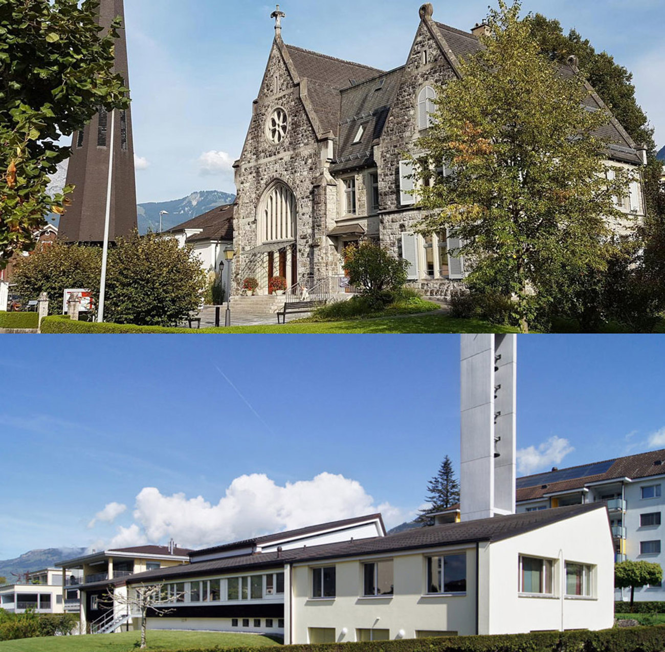 In Schwyz diente ab 1945 eine alte Soldatenbaracke als Gottesdienstlokal, bevor 1958 die Kirche an der Schmiedgasse 34 eingeweiht werden konnte. Zentrales Gestaltungselement ist das Glasfenster von Gian Casty, das den auferstandenen Christus als König darstellt, auf den ein Engel verweist.